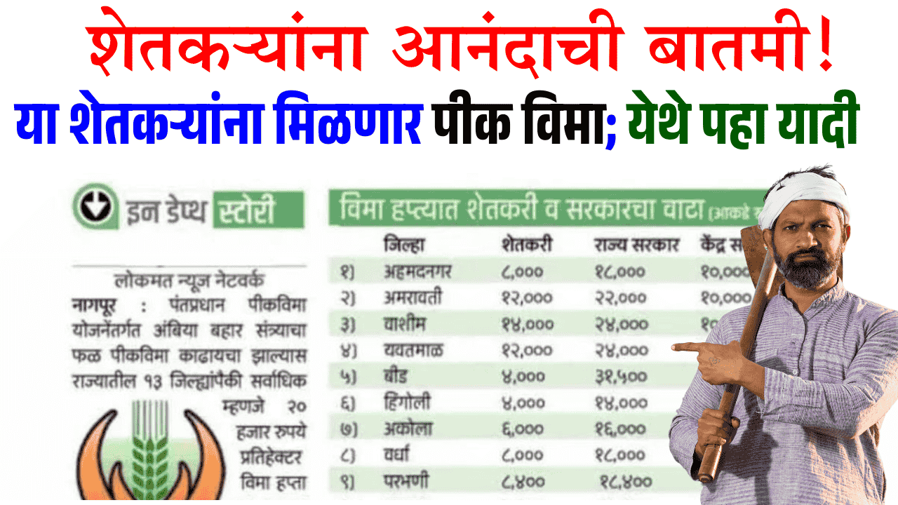 शेतकऱ्यांना आनंदाची बातमी! या शेतकऱ्यांना मिळणार पीक विमा; येथे पहा यादी. pik vima watap